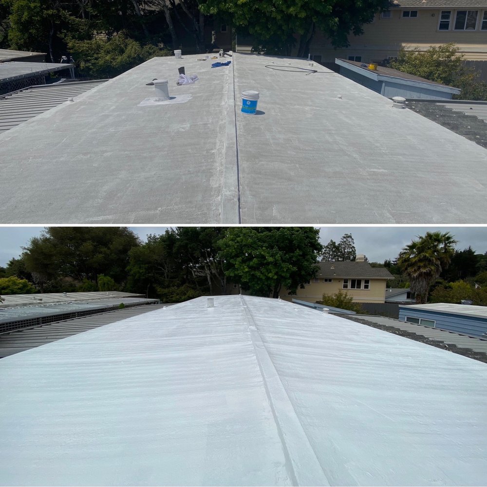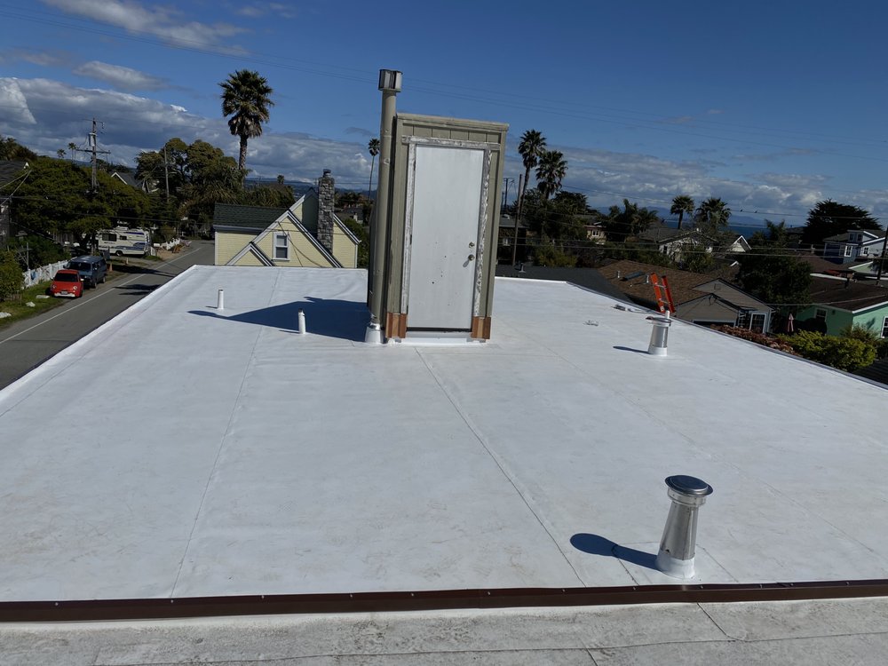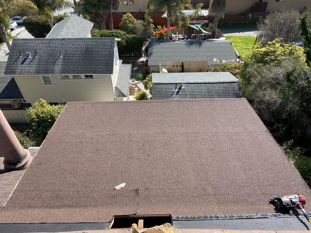 Gallery our Projects we’re providing quality roofing services Loading Images We have completed 15 metal roofs on the cabins at the Quaker Center in Ben Lomond. A TPO flat roof in Pleasure PointFall protection (Jacks and Boards) with harnessesA mobile home re-coat using a high end 100% acrylic coating.Metal cabins at a retreat centerMineral surface, self adhered, rolled roofingWe love adding life to a roof with a high end coating on mobile homes!Transition from composition shingle roof to standing seam metal roofCompleting a shingle repairSometimes it is only the ridge that needs repairWe have been completing numerous tile repairs in Santa Cruz County. Let us know if you are having issues with your tile roof.A beautiful new tile roof!Drone view of a completed multi-system roofGAF shingle system (color: slate)Another view of the roof we installed with Owens Corning "Duration" shingles (color: driftwood)This is a roof we installed with Owens Corning "Duration" shingles (color: driftwood)Drone shot of a completed shingle re-roofWe offer a large variety of shingle colors and stylesAerial view of a multi-building re-roof job View our services Contact us Need Roofing Services? Call To Ask Any Question(831) 325-7045 Free Estimate